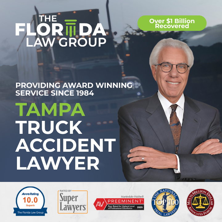 At The Florida Law Group, we don’t give up on our clients, even the ones with demanding cases, and our lawyers are determined to hold each negligent truck driver and company accountable for wrongful injuries. These types of cases can be some of the most difficult to litigate, but we have a reputation for reaching high-valued settlements, and we are prepared to combat any legal maneuver we encounter. We have been nationally recognized by the ®, Avvo, the Best Lawyers in Tampa Bay, the National Trial Lawyers Top 100, the New York Times, and CBS Evening News. Because all accident cases have a statute of limitations, after being involved in a Tampa truck accident, immediately call one of our attorneys to discuss your legal options!